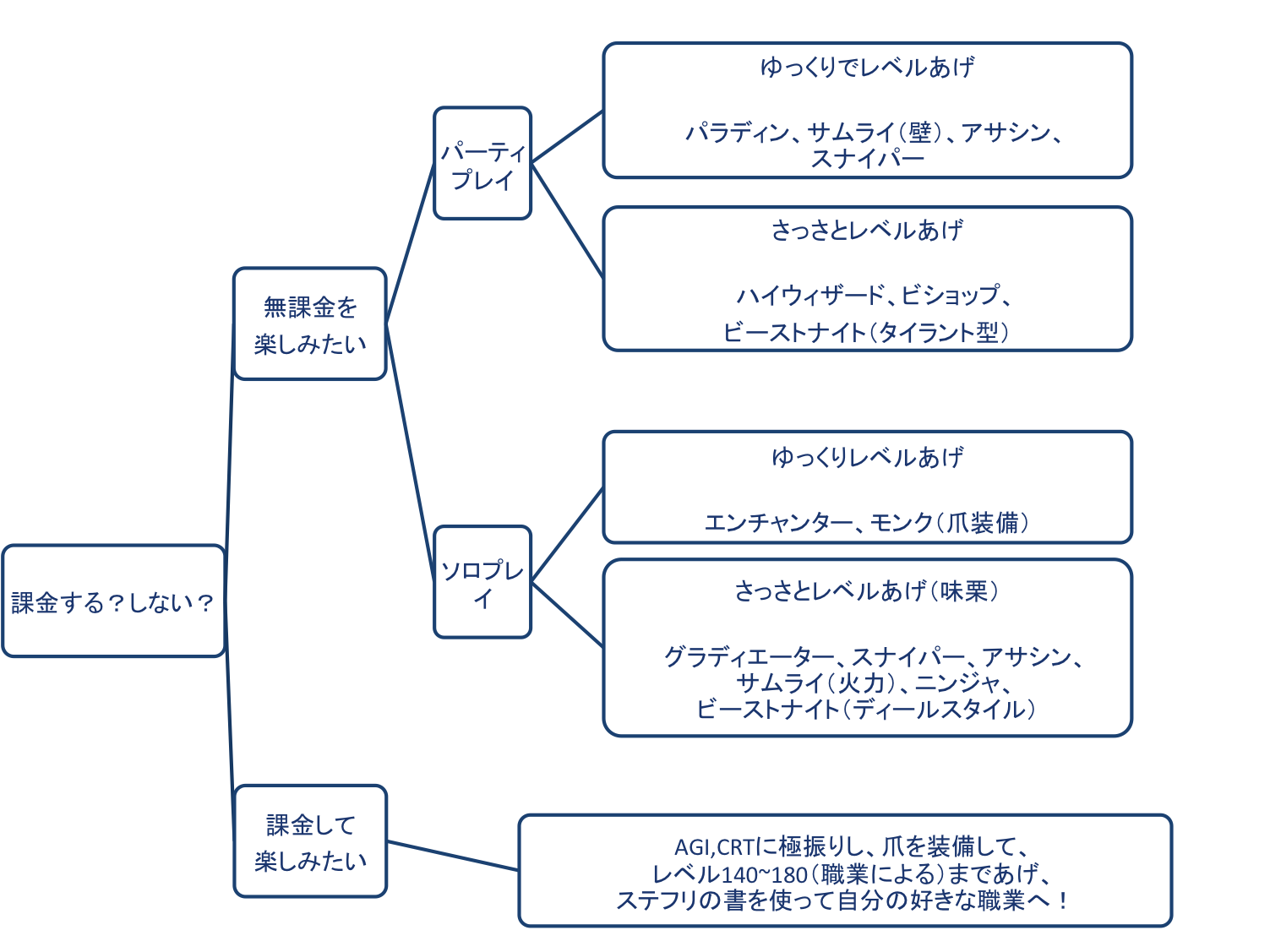 昨日ステータスとか職業についてギルメンと語り合った?ので、なんとなく職業とプレイスタイルをまとめてみました。